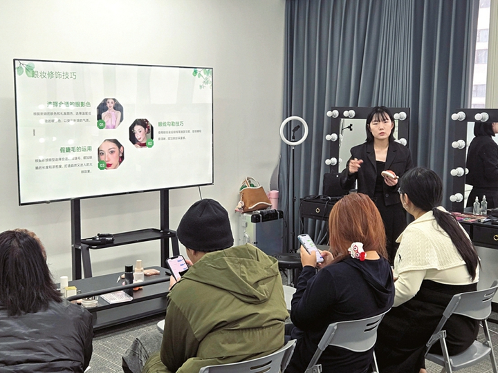 伊凡美学培训室里,培训老师正在给学员授课。