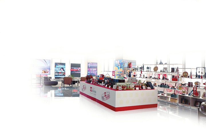 临汾精品微短剧基地的当地特色产品展台。