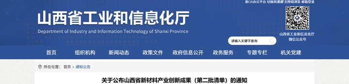山西省工信厅从2024年起面向山西省内从事研发和生产的企(事)业单位、科研院所、高校开展了相关新材料产业创新成果的遴选工作。