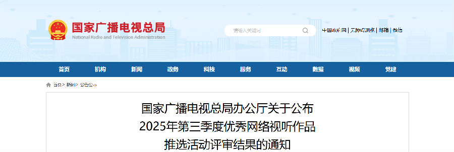 国家广播电视总局近期组织开展了2025年第三季度优秀网络视听作品推选活动。活动以繁荣互联网条件下的新大众文艺为导向,鼓励网络视听行业创作生产高质量视听内容,发挥优秀作品示范引领作用,营造良好创作传播生态。经省级广电行政部门和中央直属单位等推荐,专家评审委员会评审等程序,最终研究确定100部作品入选,其中,山西广播电视台出品的《文化中国行·屋檐上的文脉 | “90后”古建“摆渡人》和知了鹦鹉(临汾)影视文化传媒有限公司等公司出品的《鹦鹉》两部作品获奖。