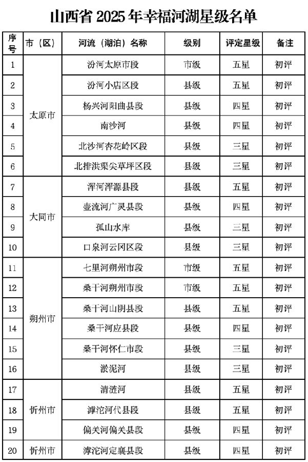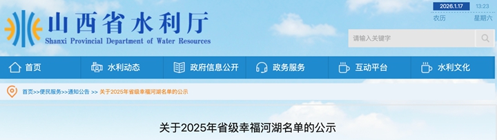1月16日,山西省水利厅公示2025年省级幸福河湖名单,汾河太原市段等60条(段、个)河湖(库)被初评为2025年省级幸福河湖。