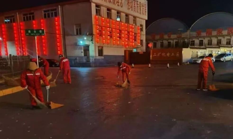张长俊负责的二矿体育馆广场、俱乐部广场,经过除夕一夜的欢庆,地面铺满了烟花碎屑、炮衣、包装纸等杂物。他第一时间检查防护装备,重点排查广场角落未燃尽的烟花、未熄灭的烟头,严防安全隐患。“春节人流量大,烟花残留物多,一定得勤扫、勤清,尤其是残留火星,一点也不能大意。”张长俊说。