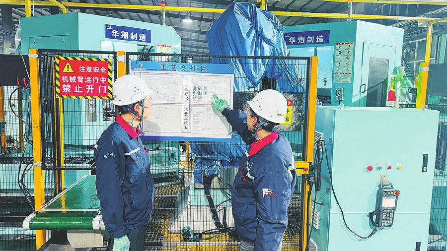 华翔圣德曼新能源汽车零部件加工车间。本报记者郝薇摄