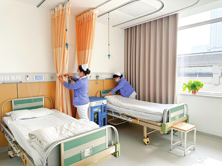 山西省第五人民医院(省老年医院)全面开展病房适老化改造工作,在已完成适老化改造的新病房内,护士们正在进行整理清洁。本报记者秦洋摄