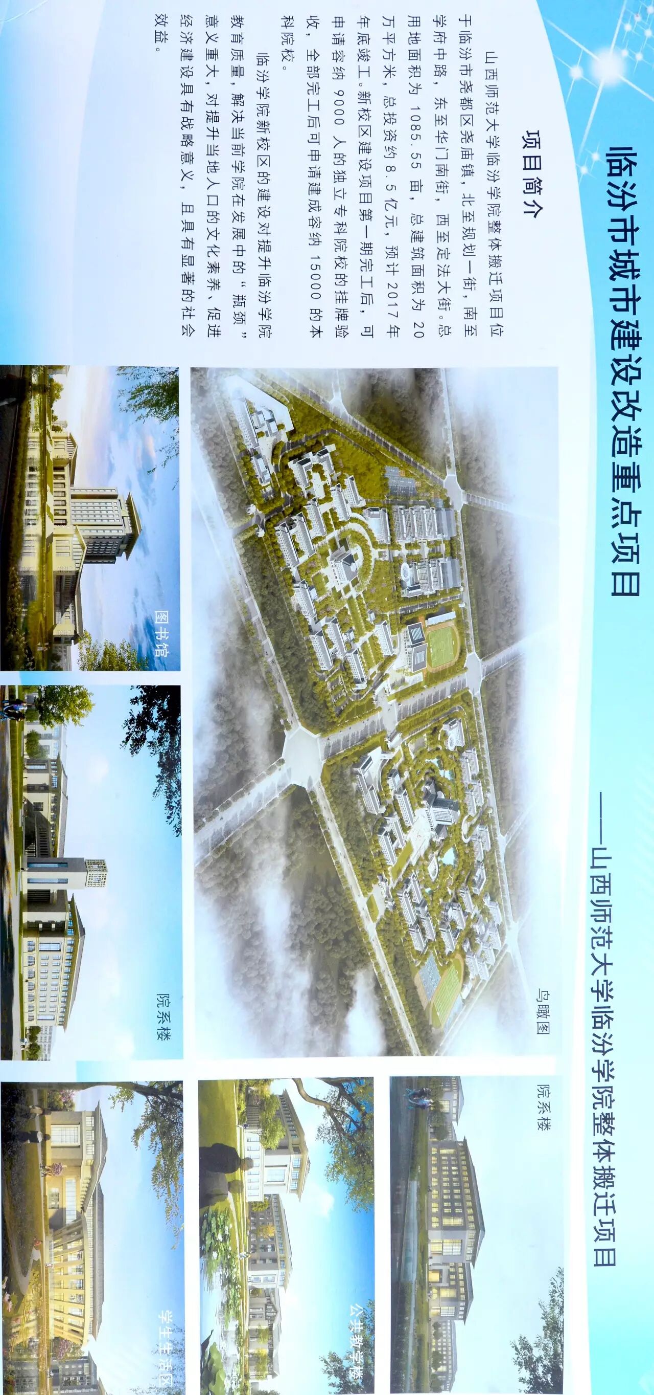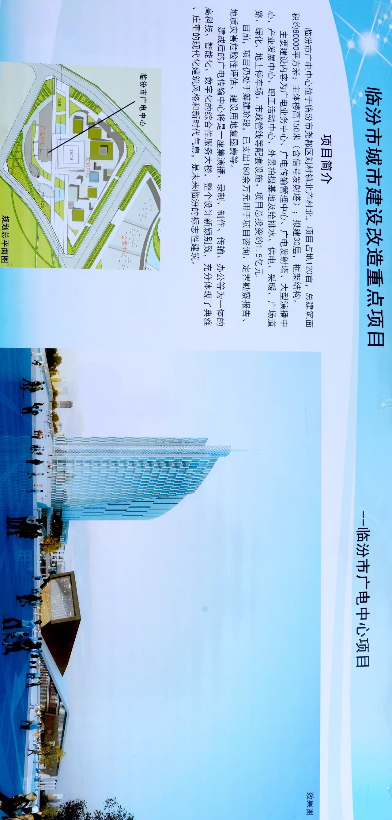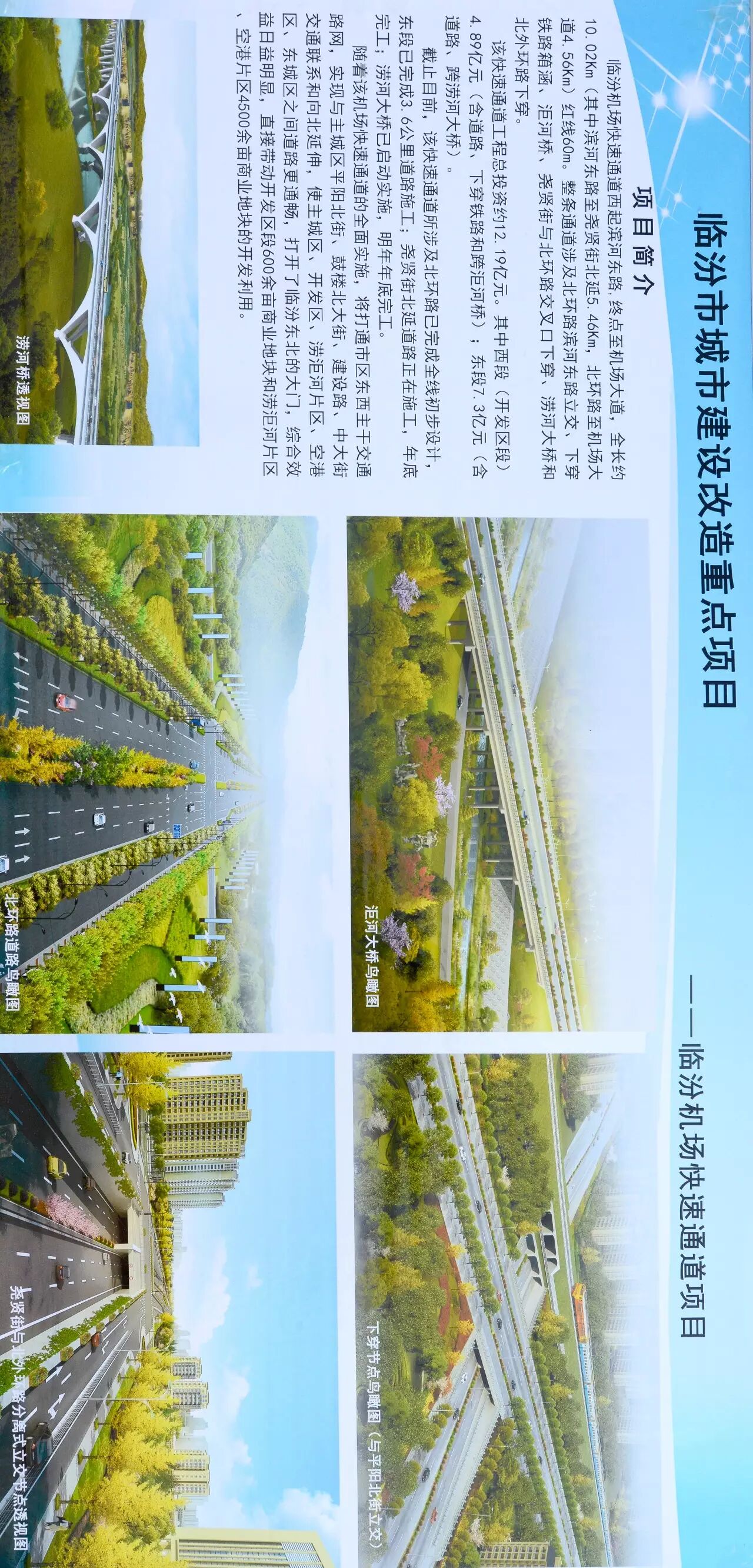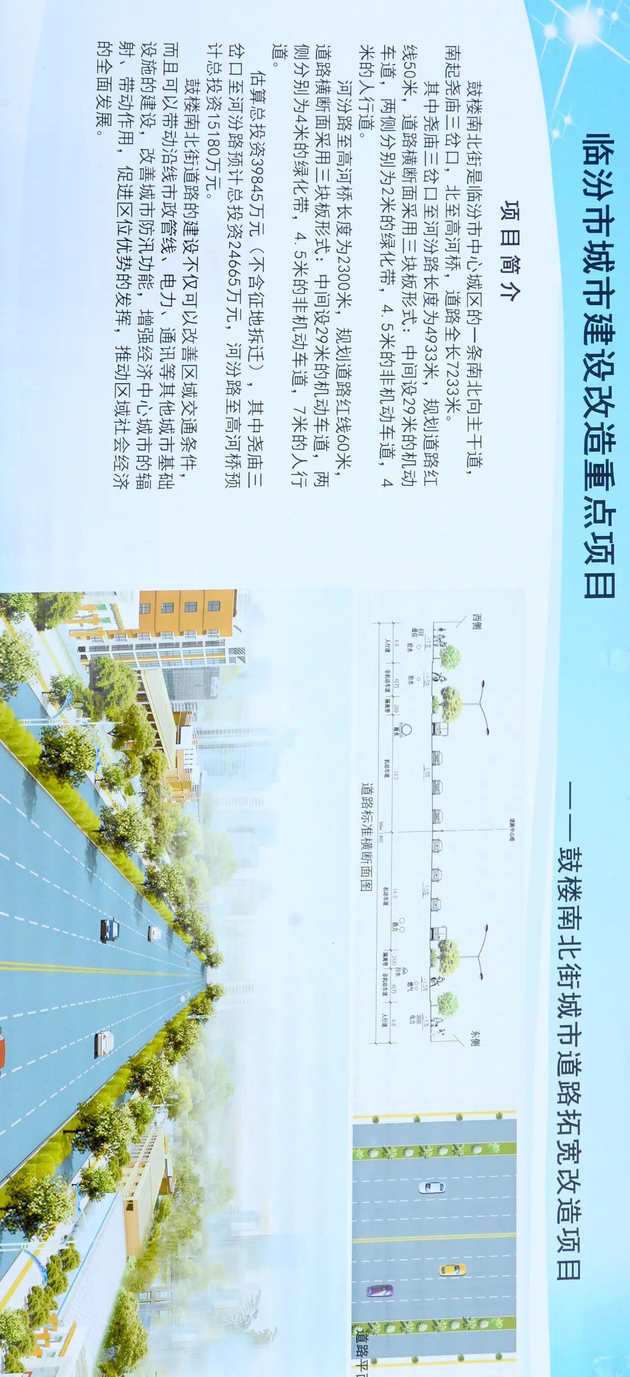 市委、市政府近期确定了即将进行15项城市建设和改造重点项目,包括临汾机场快速通道项目、市广电中心及奥体中心项目、鼓楼西街横跨中大街立交桥项目、鼓楼南北街城市道路拓宽改造项目及污水处理厂等诸多工程,涉及了社会事业、民生、基础设施等方面,皆是惠及民生、关乎广大人民群众切身利益的实事。这一重大决策在市民中激起强烈反响,被很多人赞誉为“大气魄、大手笔、大举措”。