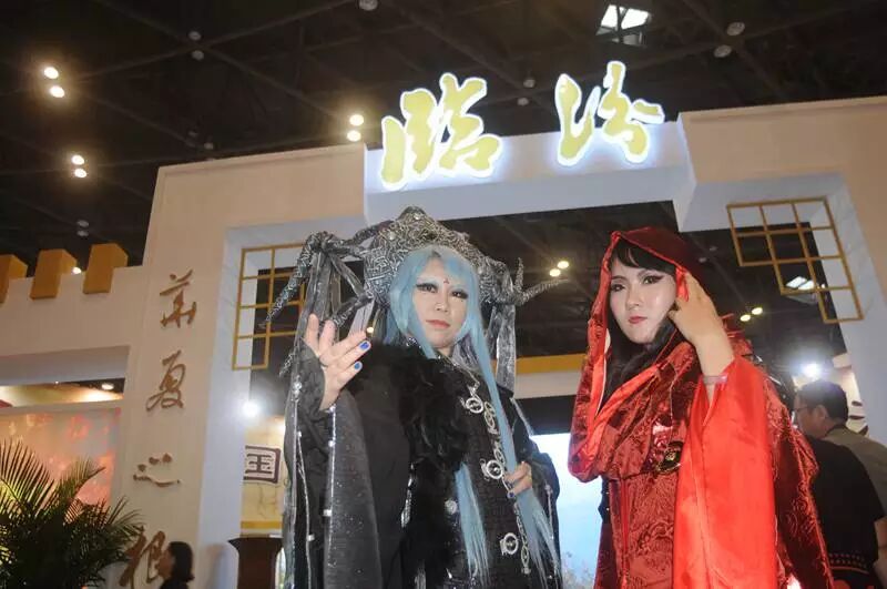 临汾展厅正门入口,两名COSPLAYER正合影留念。