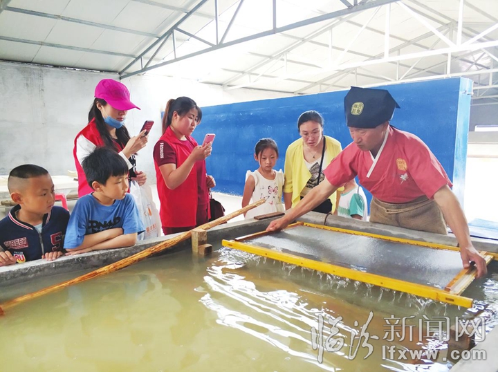 临汾新闻网讯 5月13日,在襄汾县邓庄镇西侯村临汾平尧麻笺公司,来自临汾市解放路第二小学的100余名学生和家长正在参观传统手工造纸技艺。麻笺即麻纸,以襄汾邓庄一带所产为上品,自唐至明清,就被指定为皇家用纸,蜚声海内外。