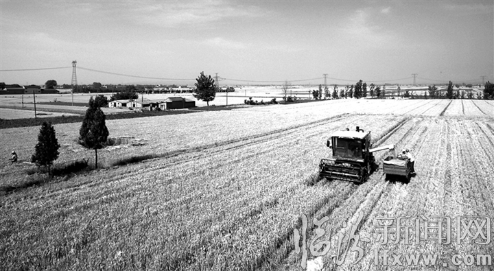 临汾新闻网讯 近年来,襄汾县引导农民科学种植、科学管理,今年种植的65.5万亩小麦喜获丰收。该县机收面积约为64.2万亩,机收率达98%左右。图为襄汾县赵康镇东汾阳村小麦机收现场。