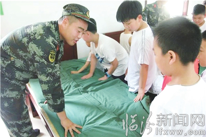 临汾新闻网讯 近日,翼城县源泉打击乐培训中心的孩子们走进翼城武警中队营区,观看了战士们日常训练表演,了解了他们井井有条的生活、严明的纪律。战士们还现场手把手地教孩子们叠军被,增强孩子们的动手能力。